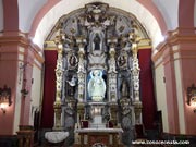 El retablo mayor actualmente existente procede de la desaparecida iglesia de Nuestra Señora de Gracia, que perteneció a la Orden de los Trinitarios Descalzos, está fechado en el segundo tercio del siglo XVIII, siendo dorado hacia 1.790. Realizado en madera pintada en gris con molduras doradas y decoración de hojarasca, su estructura se compone de banco, un cuerpo dividido en tres calles y ático. En el banco figura el Sagrario, flanqueado por dos pequeñas portezuelas. El ático dispone en el centro de un medallón escultórico con la representación de la Trinidad.