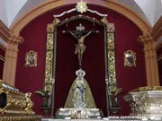En la nave del Evangelio se sitúan diversas imágenes, de desigual valor artístico. Sobre la puerta de la sacristía, en una hornacina, escultura moderna del Sagrado Corazón de Jesús. En el crucero se adosa una capilla de moderna construcción, compuesta por una nave dividida en dos tramos cubiertos con bóveda de cañón. En ella reciben culto las imágenes titulares de la Cofradía del Santísimo Cristo de la Buena Muerta y Nuestra Señora del Mayor Dolor. El Crucificado es obra moderna del Castillo Lastrucci, mientras que La Dolorosa es obra del siglo XIX debida al escultor Juan de Astorga.