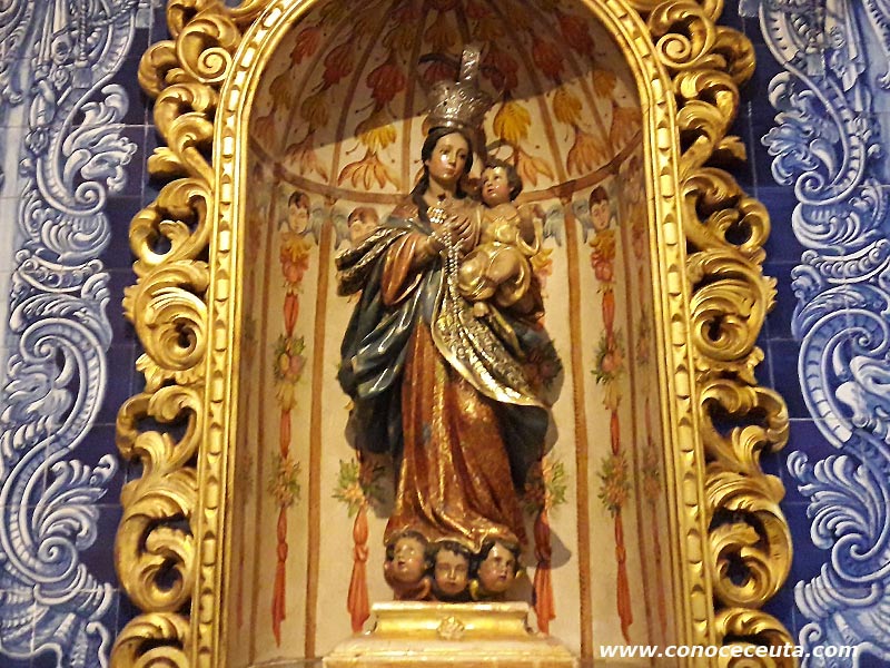 En el primer tramo de la nave, una vez pasado el crucero y en dirección a los pies, en una hornacina encontramos una escultura de la Virgen del Rosario, obra barroca de cierto interés, fechable en la primera mitad del siglo XVIII. La Virgen de pie, lleva al Niño en su brazo izquierdo, portando en la derecha el Santo Rosario. En el resto de la nave encontramos imágenes modernas de la Virgen Milagrosa, Crucificado, San Joaquín y Santa Ana. En la de la Epístola figuran diferentes esculturas modernas, como las del Corazón de María, Virgen del Carmen y San Antonio de Padua. También hay pinturas, igualmente modernas, de la Virgen del Perpetuo Socorro y el Bautismo de Cristo, esta última firmada por J. M. Alcántara.